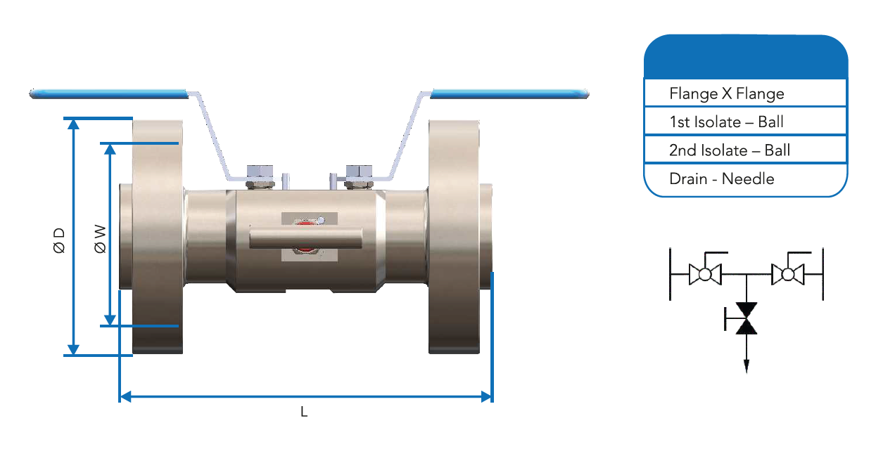 The Double Block & Bleed Valve Flange x Flange with Ball isolation and Needle drain 3/4” is commonly selected for small to medium piping systems where space is limited and precise instrument or gauge isolation is required.Sign in