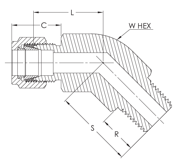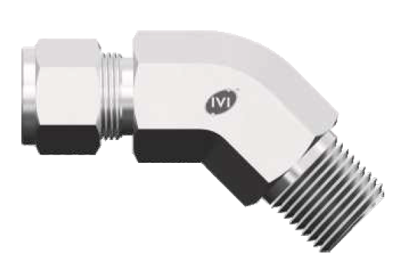 Tube Fittings 45 Degrees Elbow NPT Thread – 1/16”, 1/8”, 3/16”, 1/4”, 5/16”, 3/8”, 1/2", 5/8”, 3/4”, 7/8”, 1” – 6000 PSI – ASME B16.34 / MSS-SP-99 / ASME B31.3