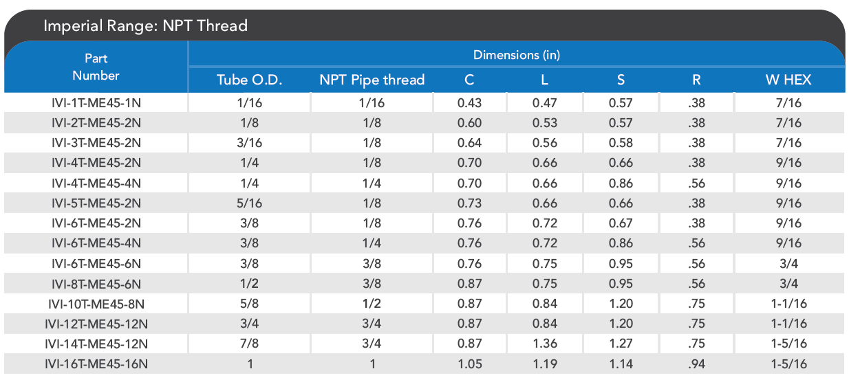 Unique to this fitting is its ability to create a precise 45° angle connection without compromising the integrity of the tubing system, making it ideal for applications where space is limited or exact routing is required. Installation is straightforward: the tube is inserted into the fitting, and the NPT threads create a secure mechanical seal that resists leakage over extended operational periods.