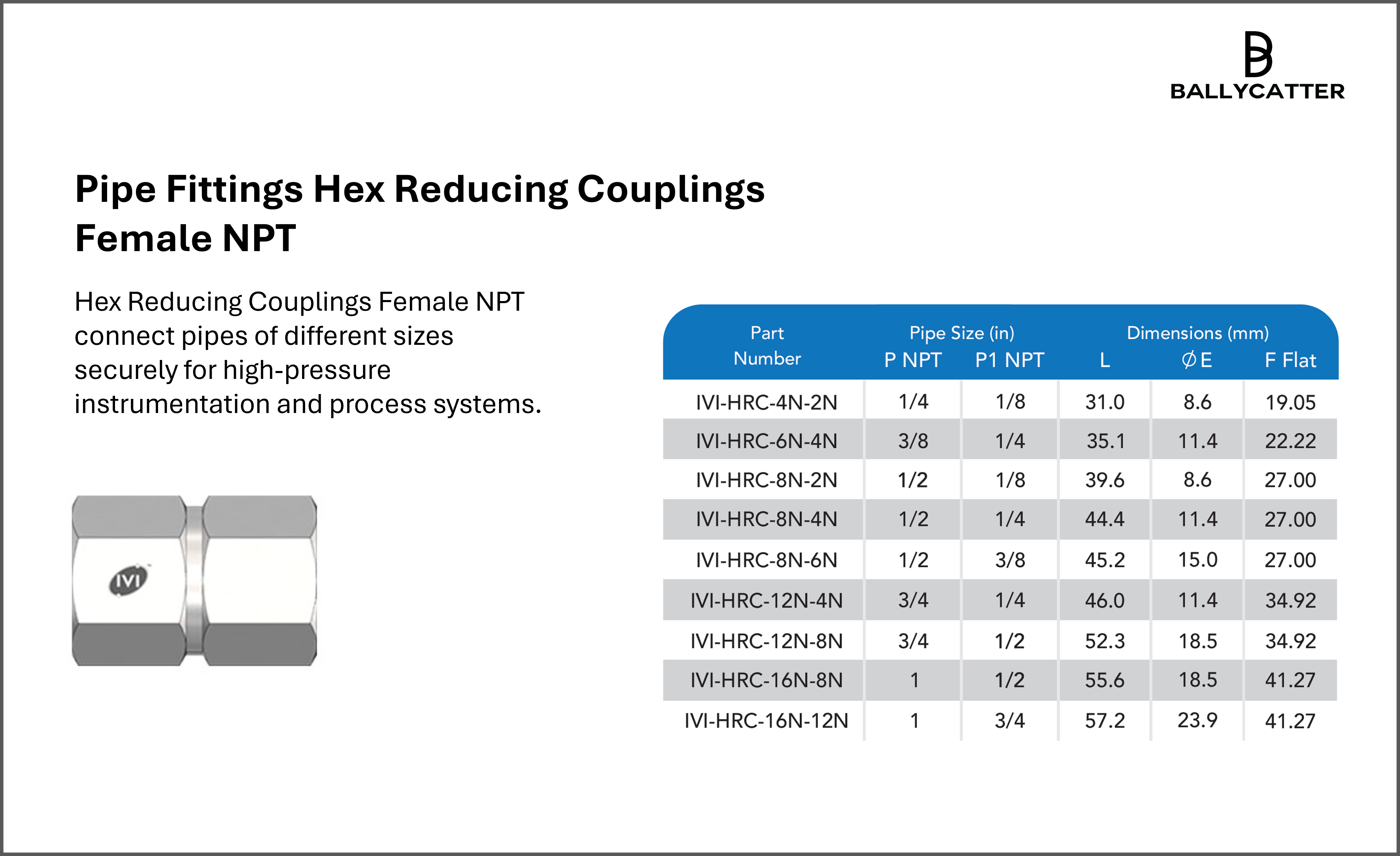Hex Reducing Couplings Female NPT are pipe fittings designed to join two pipes of different sizes in instrumentation and process systems. They provide a reliable, threaded connection that maintains system integrity under high pressures up to 10,000 PSI.