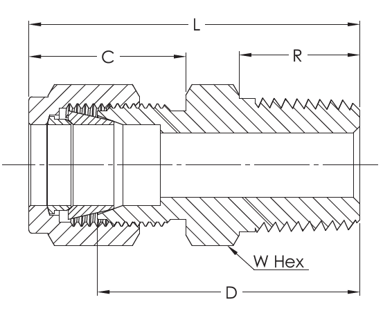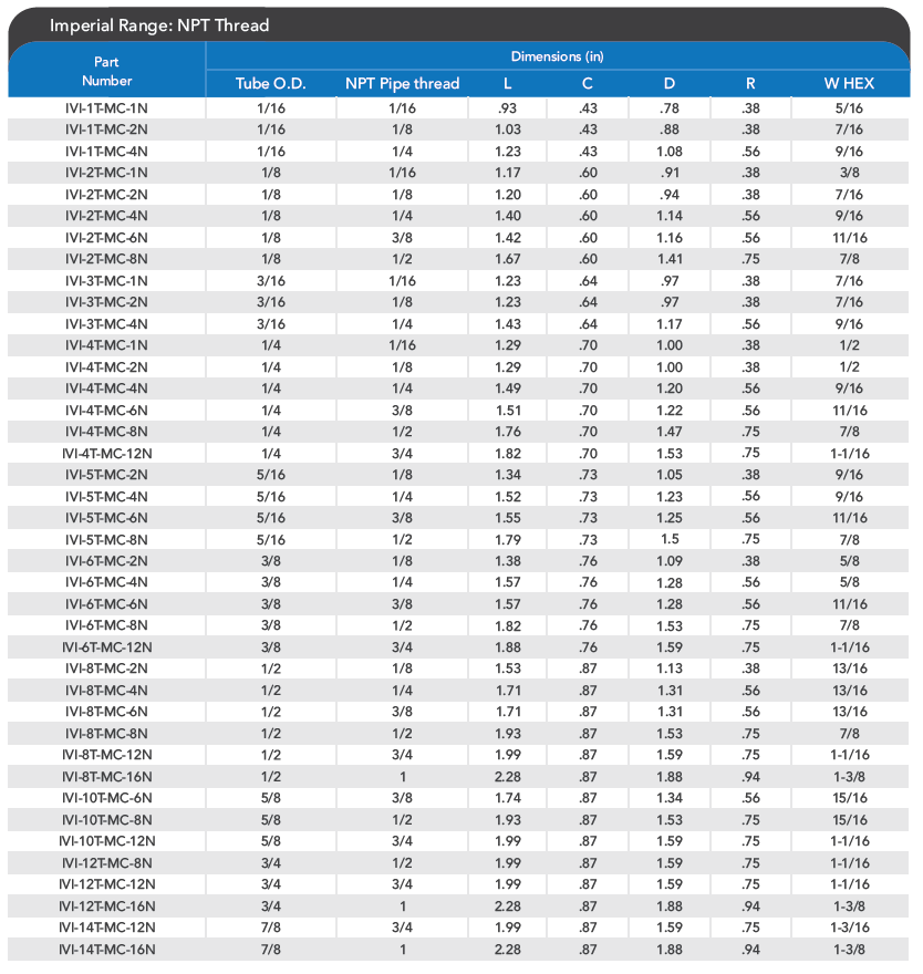 Tube Fittings Male Connector NPT – 1/16”, 1/8”, 3/16”, 1/4”, 5/16”, 3/8”, 1/2", 5/8”, 3/4”, 7/8” – 6000 PSI – ASME B16.34 / MSS-SP-99 / ASME B31.3
