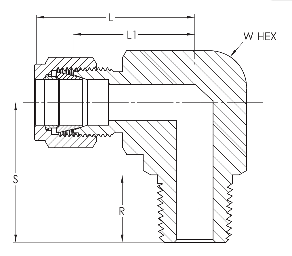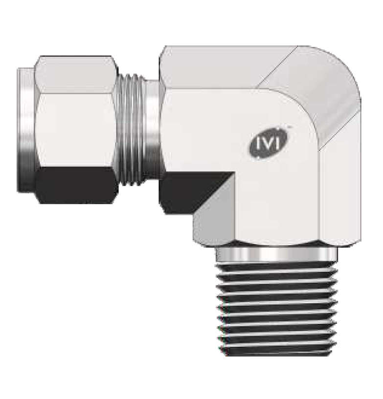 The Tube Fittings Male Elbow NPT is a mechanical fitting that provides a 90° connection between tubing and components with National Pipe Taper (NPT) threads. It is designed for use in high-pressure systems with operating pressures up to 6000 PSI.