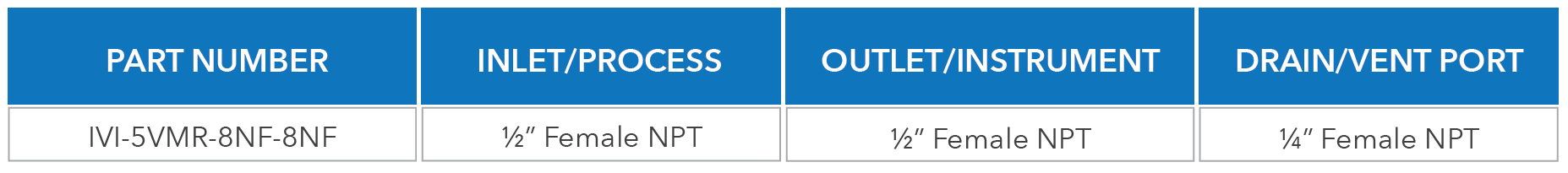 Outlet/Instrument | 1/2” Female NPT |